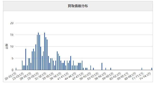 念のため買取価格分布をもう一回見てみましょう。