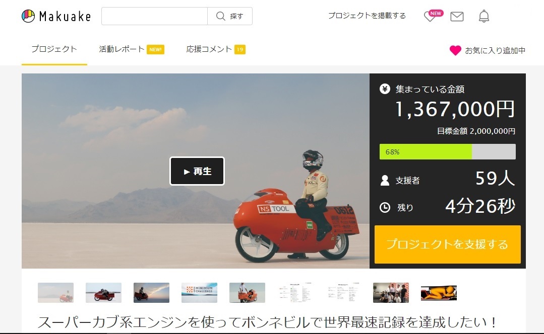 今回のクラウドファウンディングも残りあと4日。苦戦しています。ぜひ応援していただいている皆さんの、さらなる情報拡散よろしくお願いします。皆さんと一緒に、この究極のエンジンでボンネビルを走らせてください。