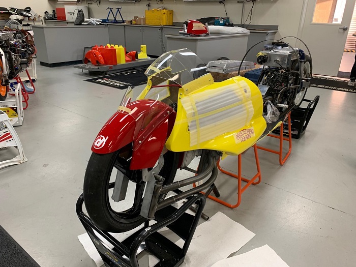 バイク本体は7月初旬に船便で発送済みでしたが、カウルの完成に時間を要してしまい、結局飛行機の手荷物として輸送しています。