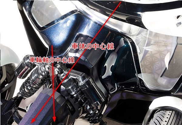 MW-VISIONのLMWをよく見ると、車輪軸と車体軸の傾く角度が違っているのが分かります。