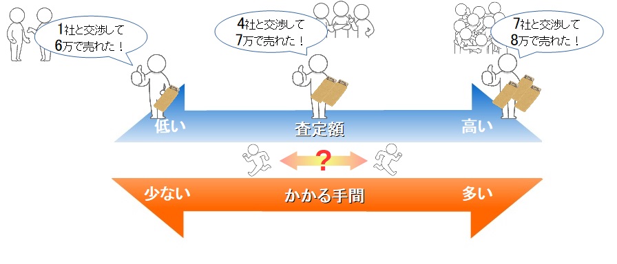 数少ない買取候補の中から、高値の会社を探すには相当の熱意が必要ですが、頑張りすぎてしまうと、たとえ高値を掴んでも、それまでの労力に見合わなくなってしまいます。