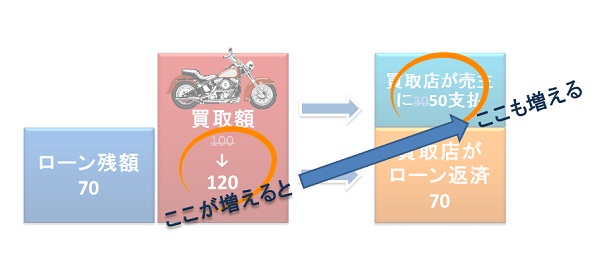 その上で、新しいバイクの借入額に買取店が負担した額を上乗せします。