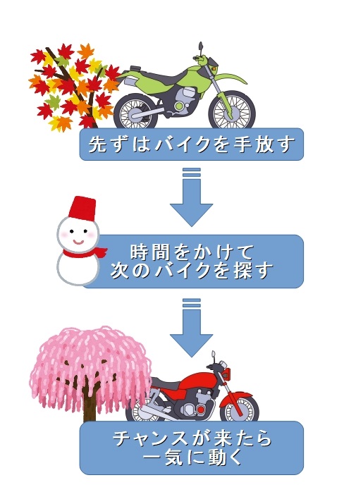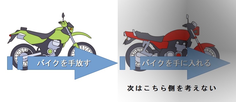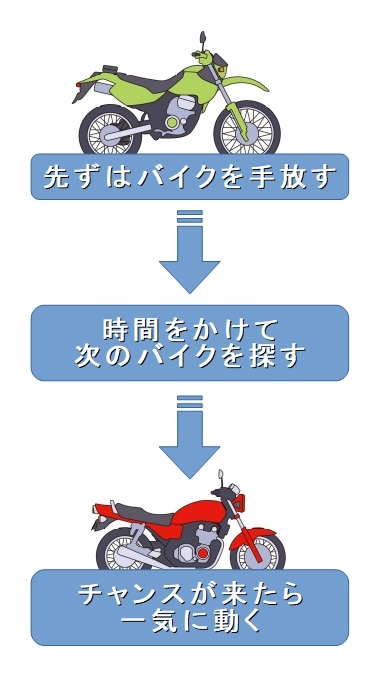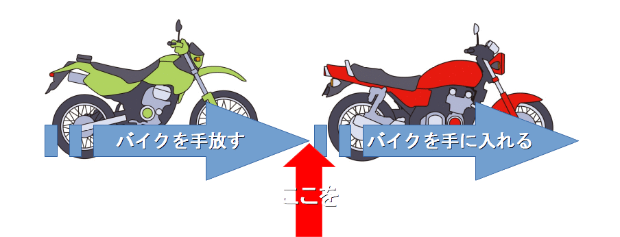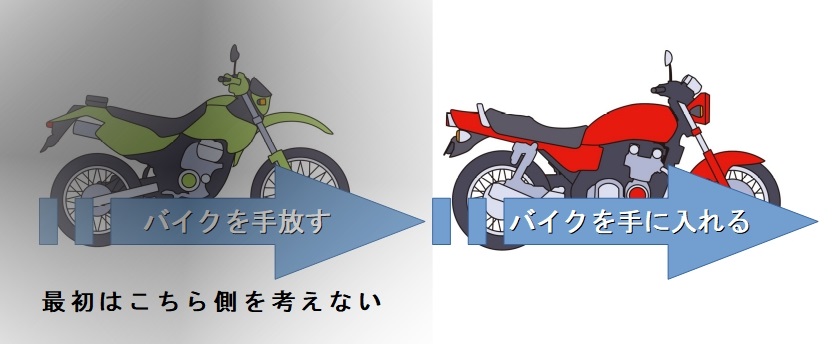 バイクを手放すのと手に入れるのを同時に行わなくてはいけない、という固定観念が気付かぬうちに損を引き寄せます。