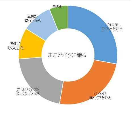 「バイクが古くなったから」と「バイクが壊れてきたから」で全体の半分以上を占めています。