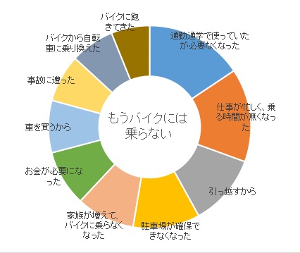 バイクにはもう乗らない、しばらくは乗れない、と思える理由とその構成比は次の通りです。